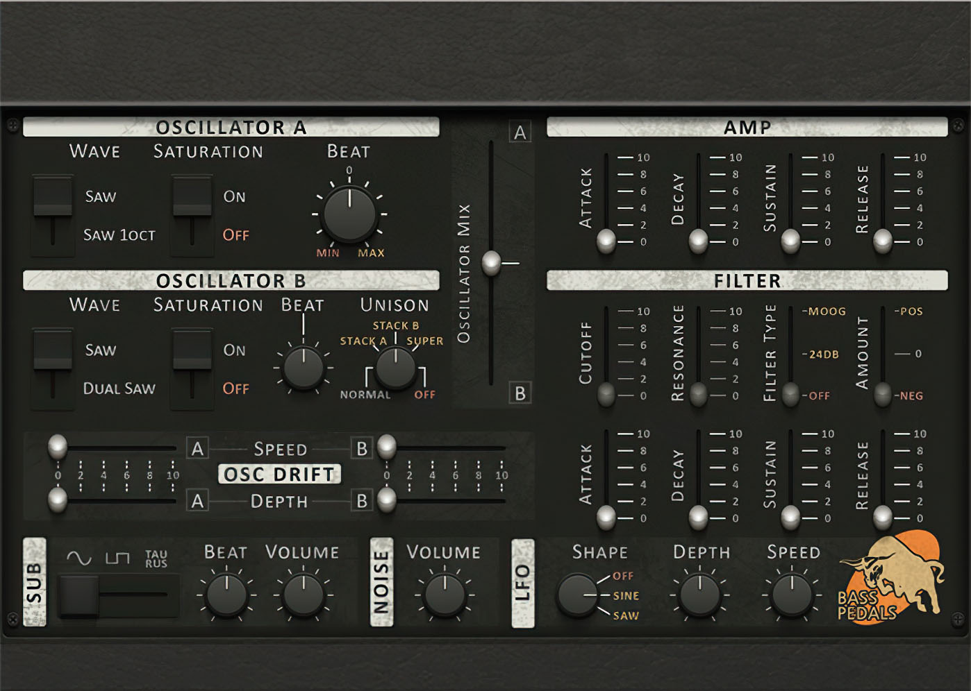 Synthesize your own ‘Taurus like’ sounds using Bass Pedals’ raw oscillators…