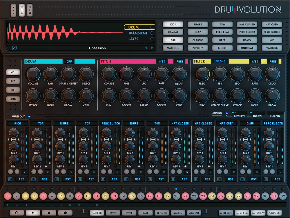 With custom macro controls, XY sound layering, intuitive sample browsing, parameter lock sequencing and over 400 included presets, Drumvolution goes beyond emulation to push the boundaries of electronic music.