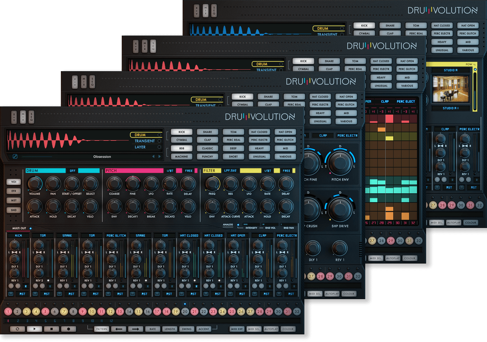 Drumvolution gives you the power to layer, sequence and transform a cutting-edge library of electronic drums and sound design tools built for forward thinking producers.
