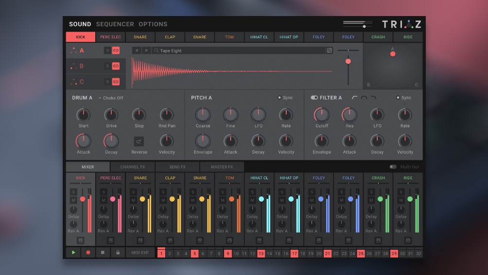 Intuitively blend multiple drums with TRIAZ’s layering engine and XY Pad for instant results.